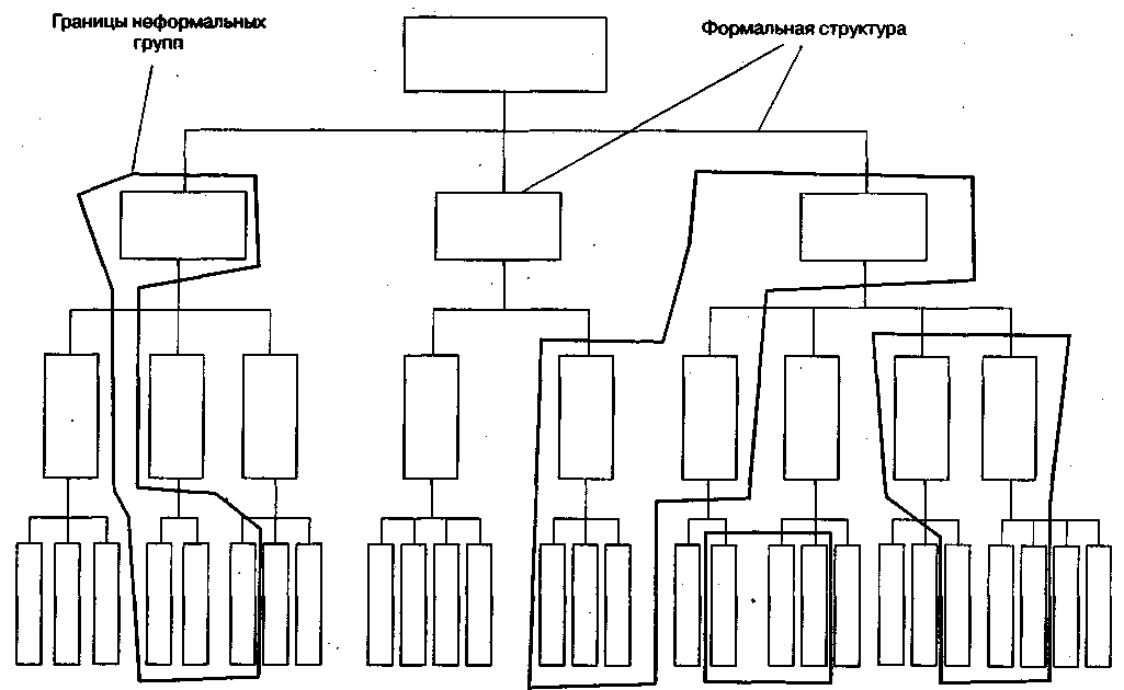 Неформальные группы. Как уже отмечалось, в формальной структуре любой организации существуют неформальные группы. Эти группы основаны преимущественно на межличностных отношениях, удовлетворении (или неудовлетворении) психологических и социальных потребностей, не связанных с формальными целями и задачами. В этом случае члены социальных групп в организации ориентированы не на социальные статусы и роли, а на первичные групповые отношения. В таких группах развивается взаимозависимость, ее члены постоянно оказывают влияние на поведение друг друга и способствуют удовлетворению личных потребностей, например в общении, в других социальных мотивациях, которые отсутствуют в чисто рабочих ситуациях, особенно в условиях промышленных предприятий или в профитных фирмах.