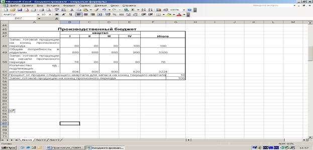 Производственный бюджет – это программа, которая определяет номенклатуру и объем производства в прогнозном периоде. Цель построения данного бюджета – расчет прогнозного объема производства с учетом наличия производственных мощностей, исходя из результатов расчета бюджета реализации и целевого остатка произведенной, но нереализованной продукции (запасов готовой продукции).