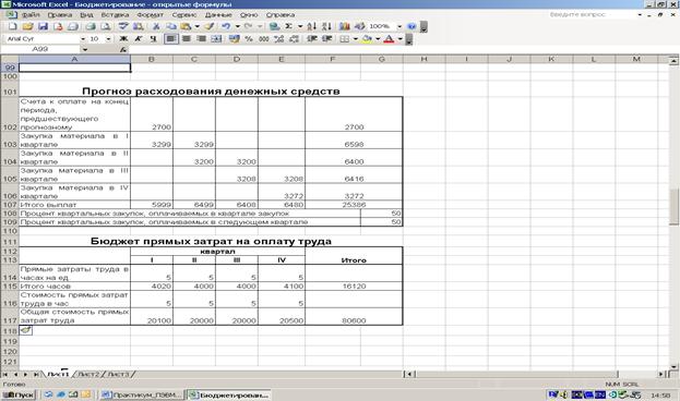 Рис.3. Бюджет прямых затрат на материалы