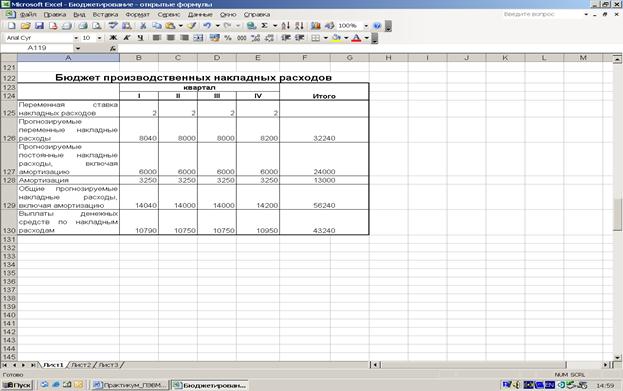 Бюджет производственных накладных расходов – это стоимостное выражение затрат, связанных с производством готовой продукции за исключением прямых затрат на материалы и оплату труда.