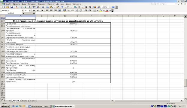Прогнозные показатели данного отчета рассчитываются и формируются в основном в предыдущих бюджетах. В конечном счете рассчитывается величина чистой прибыли предприятия, которая позволяет сделать вывод о прибыльности/убыточности деятельности предприятия в прогнозном периоде