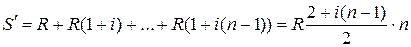 | Порядковый номер платежа | Величина платежа | Наращенная величина платежа |