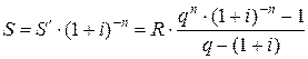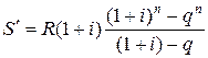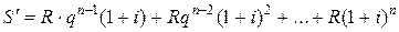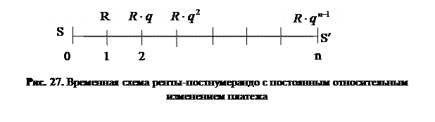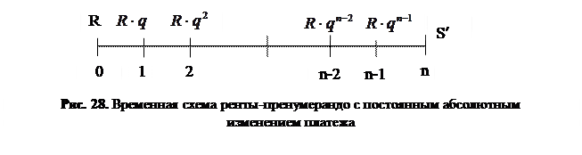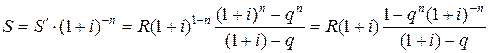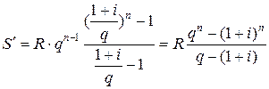 Платежи вносятся n лет в конце года. Каждый последующий член больше предыдущего в q раз, т.е. члены ренты изменяются в геометрической прогрессии. В конце года начисляются сложные проценты по ставке i.