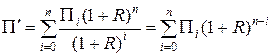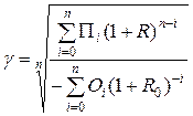 Таким образом, дисконтированная сумма денежных оттоков О на начальный (нулевой) момент времени разделена от наращенной суммы денежных поступлений