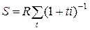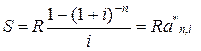 | — наращенная сумма обычной годовой ренты-постнумерандо при начислении сложных процентов;