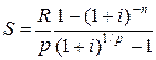 | — общее количество платежей ренты, p – число платежей в году, n – срок ренты в годах;