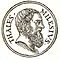 | Фалес | ≈640 — ≈546 до н. э. | Фалес жил в греческой колонии Милете, в современной Турции. Путешествовал в Египет и Вавилонию, откуда привёз первичные математические знания, основываясь на которых предсказал солнечное затмение. Фалес — первый известный истории человек, который рационально мыслил по поводу окружающего мира, и со времён Аристотеля употребляется выражение: «философия начинается с Фалеса». Предположил наличие первичной субстанции во всех вещах, и полагал, что это вода.[1] |
