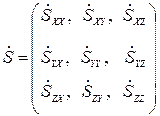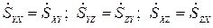 Этот тензор симметричен, его компоненты, зеркально расположенные относительно главной диагонали, равны между собой.