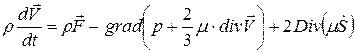 Для вывода уравнений динамики вязкого газа используем уравнение в напряжениях, что при выводе уравнений Стокса: