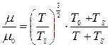 постоянная Саттерленда, известна из таблиц для всех газов)