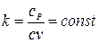 - удельные теплоёмкости газа при постоянном давлении и объёма – константы не зависят от Т и следовательно