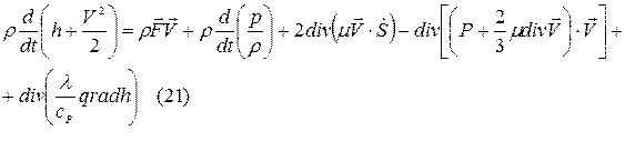 Чтобы получить замкнутую систему уравнений, составим ещё уравнение баланса тепла в движущемся газе. С этой целью используем уравнение баланса энергии в дифференциальной форме: