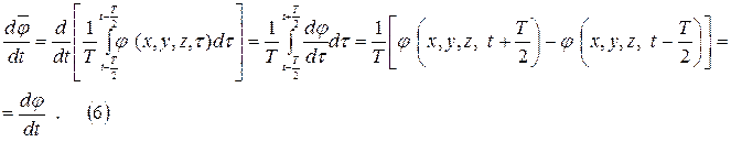Будем предполагать, что для рассматриваемого турбулентного движения существует достаточно большой по сравнению с периодом турбулентных пульсаций, но малый по сравнению с характерным для осреднённого турбулентного движения интервалом времени (периодом колебательного процесса, временем прохождения телом своей длины и др.)постоянный период осреднения