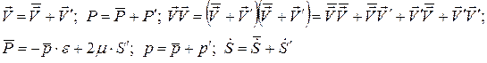 Согласно общему приёму, предложенному Рейнольдсом, разобьём все входящие в уравнение (9) величины на их осреднённые и пульсационные составляющие, т.е.