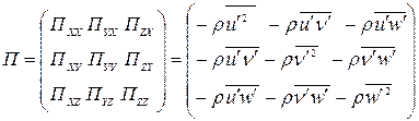 Сравнивая (10) с общим уравнением в напряжениях (9) видно, что уравнения осреднённого турбулентного течения (10) отличаются от(9) дополнительным членом – симметричным тензором второго ранга