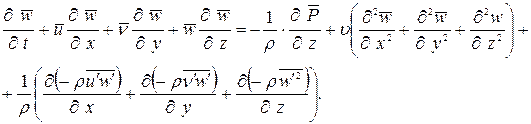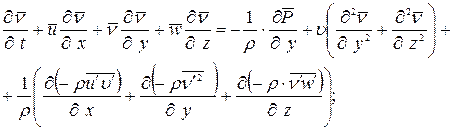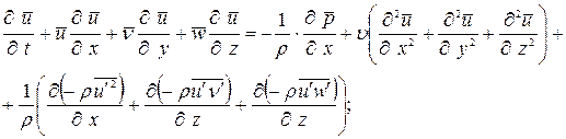 Уравнения Рейнольдса (10) в проекциях на оси декартовых координат имеют вид: