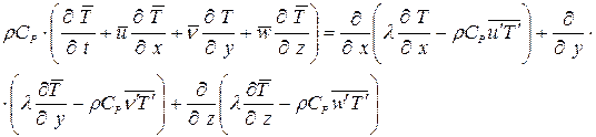 (16) применённый уравнению сохранения энергии, позволит получить следующее уравнение распространения тепла в турбулентном движении: