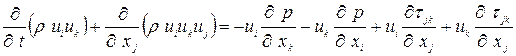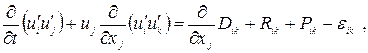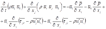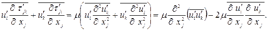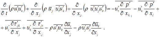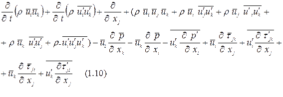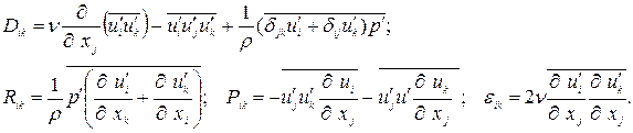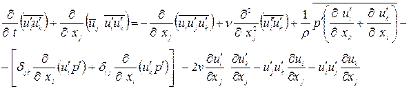 Уравнение переноса турбулентных или рейнольдсовых напряжений получается вычитанием из уравнения (1.10) уравнения (1.13):