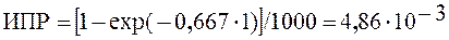 Средняя интенсивность потока аварий I=8/12=0,667. Расчет выполняется для интервала времени t = 1 году.
