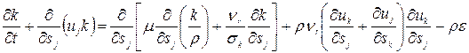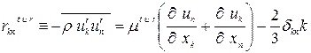можно строго получить из уравнений Навье - Стокса путём соответствующей процедуры, включающей осреднение по Рейнольдсу. Это уравнение оказывается незамкнутым. Для замыкания необходимы модельные представления отдельных его членов. Ограничимся приведением следующей формы этого уравнения