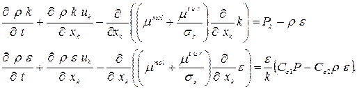 В данной работе для определения коэффициента турбулентной вязкости используется двухпараметрическая высокорейнольдсовая