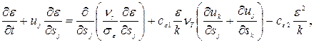 Для использования уравнений (17) – (18) необходимо задание интегрального масштаба турбулентности. В наиболее простых моделях для определения этого масштаба использовалось допущение о его адекватности пути смешения, определяемого по формулам типа формулы Прандтля (15). В более сложных моделях вместо «алгебраических» выражений для масштаба турбулентности использовались дифференциальные уравнения. Однако наибольшее распространение получили двухпараметрические модели, в которых вместо уравнения для масштаба турбулентности используется уравнение для скорости диссипации энергии турбулентности