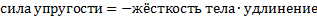 | Сила упругости – сила, возникающая при деформации, пропорциональна удлинению и направлена противоположно ему | ,