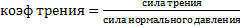 | Коэффициент трения – отношение силы трения к силе нормального давления |