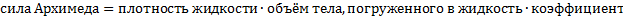 | Закон Архимеда – на погруженное в жидкость или газ тело действует выталкивающая сила, равная весу вытесненной жидкости или газа | ,