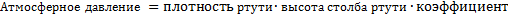 | Атмосферное давление – давление атмосферного воздуха, равное отношению веса столба воздуха над участком от поверхности Земли до границы земной атмосферы к площади участка поверхности Земли | ,