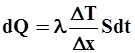 Коэффициент теплопроводности l пород характеризует количество теплоты dQ, переносимой в породе через единицу площади S в единицу времени при градиенте температуры DТ/Dх, равном единице,