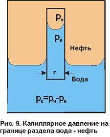 Следует отметить, что характер кривизны поверхности раздела таков, что давление в несмачивающей фазе больше, чем давление в смачивающей фазе. Поэтому в пористой среде смачивающая фаза находится под меньшим давлением, чем несмачивающая.