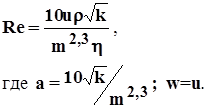 Верхняя граница. Критерием верхней границы справедливости закона Дарси обычно служит сопоставление числа Рейнольдса Re=war/h с его критическим значением Reкр, после которого линейная связь между потерей напора и расходом нарушается. В выражении для числа Re: w -характерная скорость течения: а - характерный геометрический размер пористой среды; r - плотность жидкости. Имеется ряд представлений чисел Рейнольдса, полученных различными авторами при том или ином обосновании характерных параметров. Наиболее употребима формула Щелкачёва