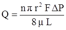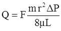 Уравнение Пуазейля описывает объёмную скорость течения жидкости через такую пористую среду: