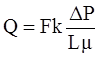 Оценка проницаемости для фильтрации через трещиноватые поры оценивается из соотношения уравнений Букингема и Дарси.