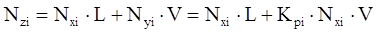 Константа фазового равновесия i-го компонента характеризуется отношением мольной доли компонента в газовой фазе (уi или Nyi) к мольной доле этого компонента в жидкой фазе (хi или Nxi), находящейся в равновесном состоянии с газовой фазой:
