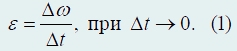 Угловым ускорением называется отношение изменения угловой скорости к промежутку времени, в течение которого это изменение произошло, при промежутке времени, стремящемся к нулю: