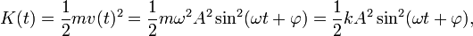Кинетическая энергия K системы в зависимости от времени t такова: