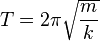 Масса m, прикреплённая к пружине с постоянной жёсткостью k, является примером простого гармонического движения в пространстве. Формула