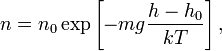 — абсолютная температура. Из барометрической формулы следует, что концентрация молекул