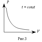 В соответствии с формулой (5) изотермический процесс представляется на графике гиперболой, которая называется изотермой (рис.3). |