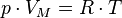 Уравнение состояния идеального газа (иногда уравнение Клапейрона или уравнениеМенделеева — Клапейрона) — формула, устанавливающая зависимость между давлением,молярным объёмом и абсолютной температурой идеального газа. Уравнение имеет вид: