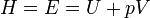 Энтальпия или энергия расширенной системы Е равна сумме внутренней энергии газа U и потенциальной энергии поршня с грузом E пот = pSx = pV