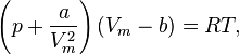 Для одного моля газа Ван-дер-Ваальса оно имеет вид: