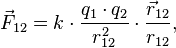 — радиус-вектор (вектор, направленный от заряда 1 к заряду 2, и равный, по модулю, расстоянию между зарядами —
