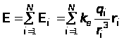 Поскольку электростатическое поле создается, в конечном счете, точечными зарядами (любое заряженное тело можно рассматривать как систему микроскопических заряженных частиц), то сила, действующая на пробный заряд со стороны произвольного электростатического поля, есть сумма сил, действующих на пробный заряд со стороны каждого точечного источника. Отсюда следует принцип суперпозиции, который посредством формулы (1.2.3) можно выразить формулой для суммы полей точечных зарядов в точке, удаленной на расстояния