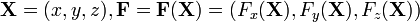 — векторное поле (вектор-функция векторного аргумента — точки пространства),