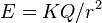 Из закона Кулона (1.1.5) и определения (1.2.1) следует, что напряженность электростатического поля, созданного точечным зарядом Q на расстоянии r от него равна