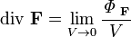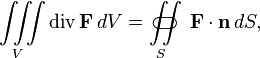 где Ф F — поток векторного поля F через сферическую поверхность площадью S, ограничивающую объём V.
