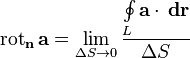 на каждое направление n есть предел отношения циркуляции векторного поля по контуру L, являющемуся краем плоской площадки Δ S, перпендикулярной этому направлению, к величине этой площадки, когда размеры площадки стремятся к нулю, а сама площадка стягивается в точку:
